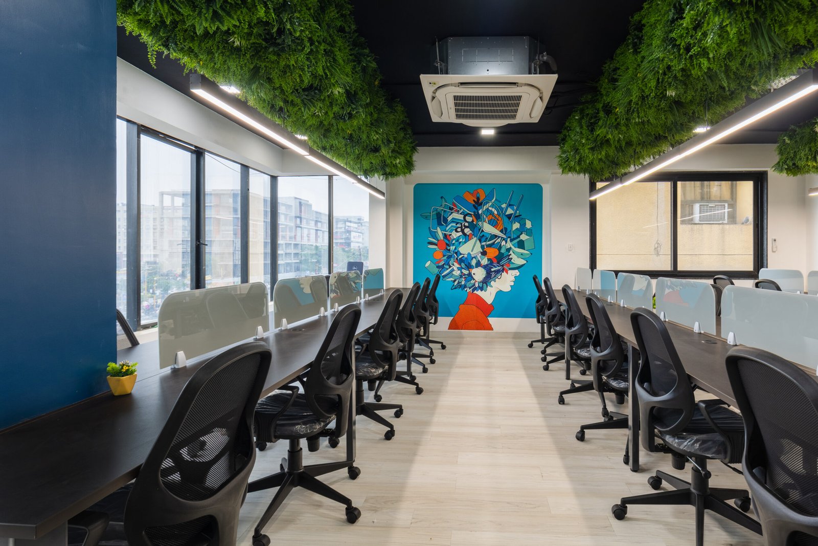 Near a fast‑growing commercial cluster. Mix of focus zones and collaboration bays with a creator studio for podcasts/webinars. Secure entry with access control and CCTV, quiet booths for confidential calls, and hybrid‑ready meeting rooms.