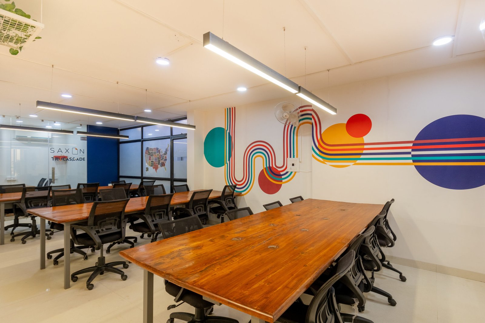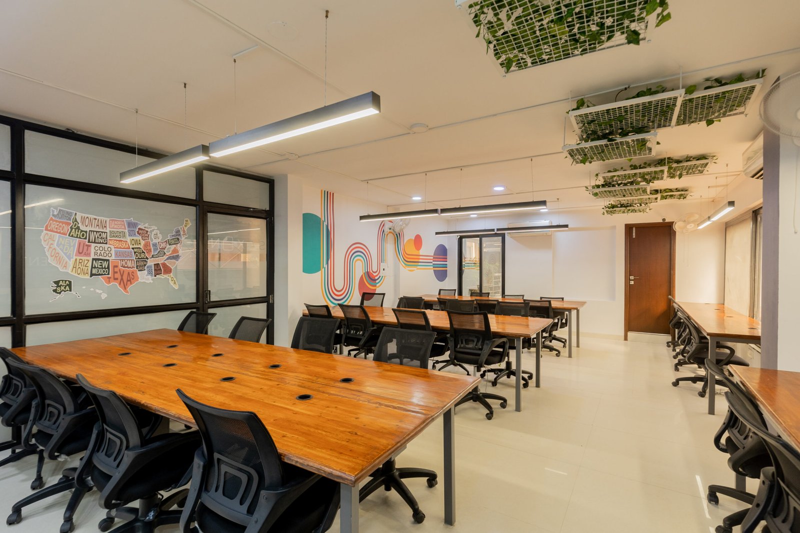 Amenities: Smart displays, whiteboard walls, pantry, reception, printing.